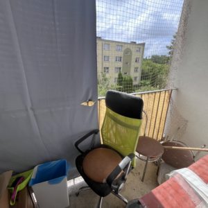 – balkon żelbetowy, na podłodze lastryko, barierka metalowa