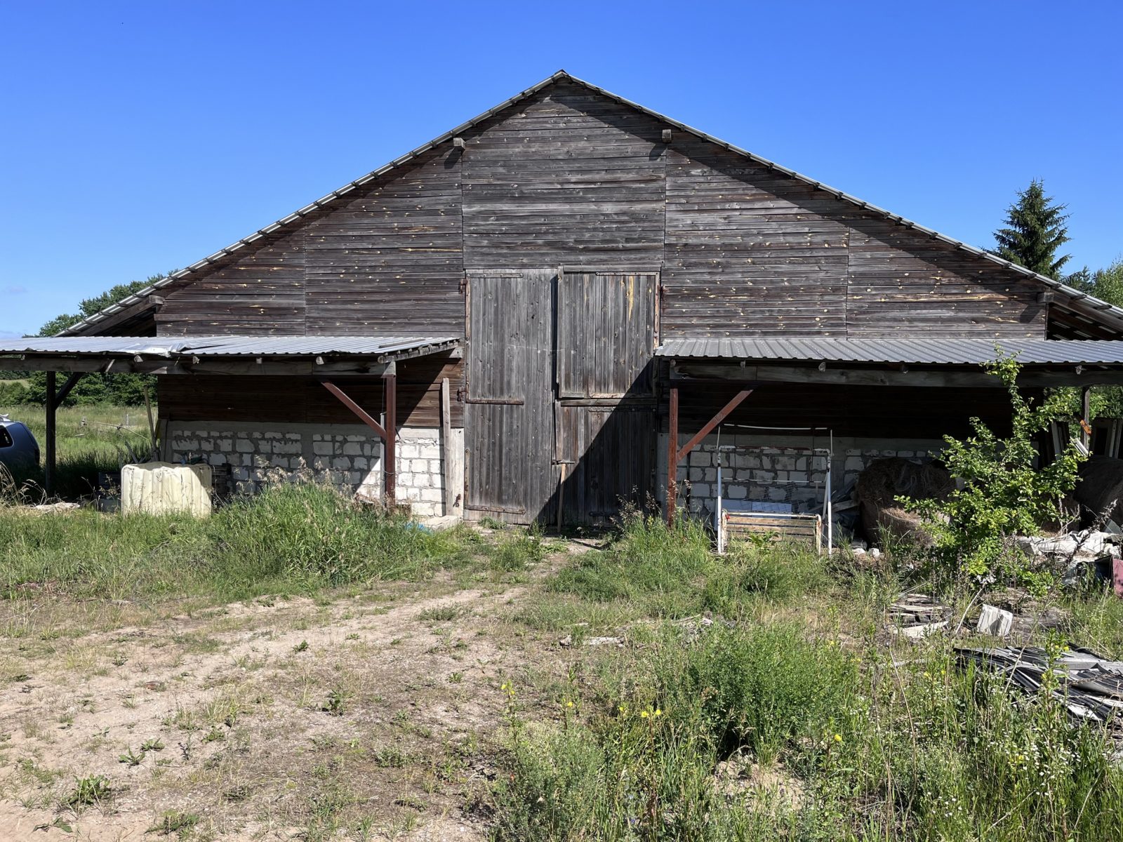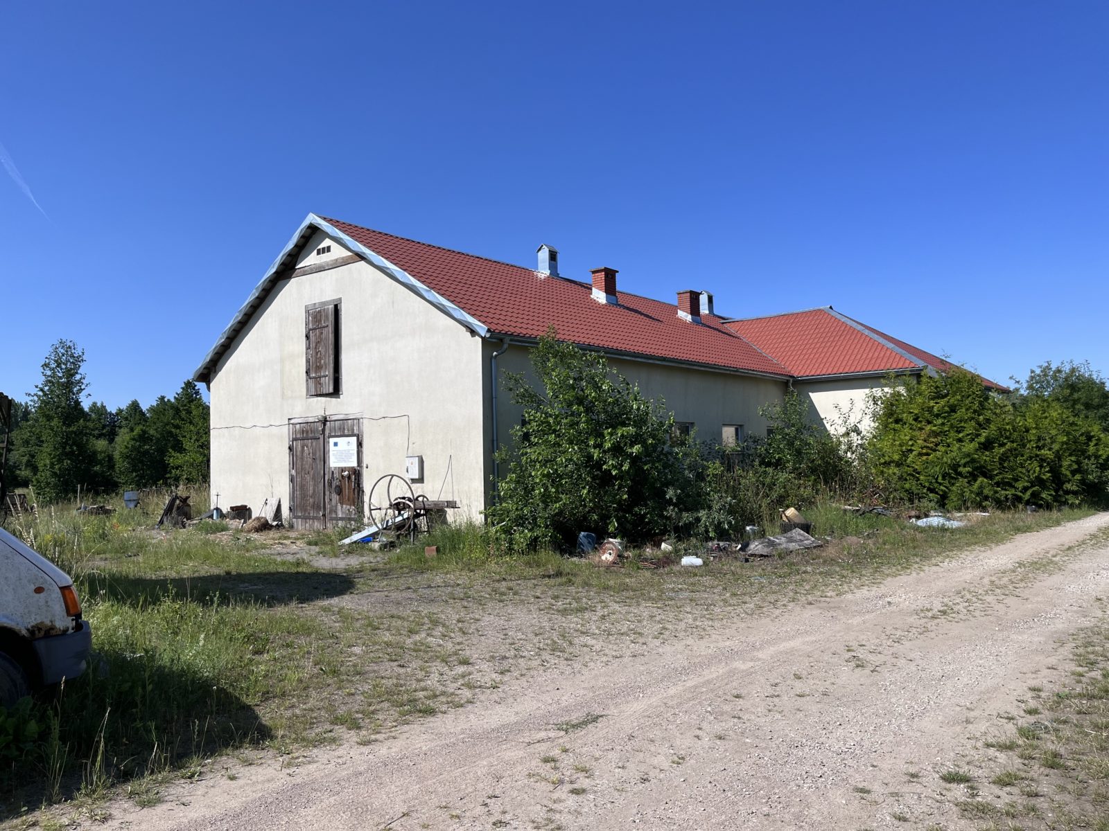 – budynek murowany, stropy żelbetowe, dach pokryty blachą