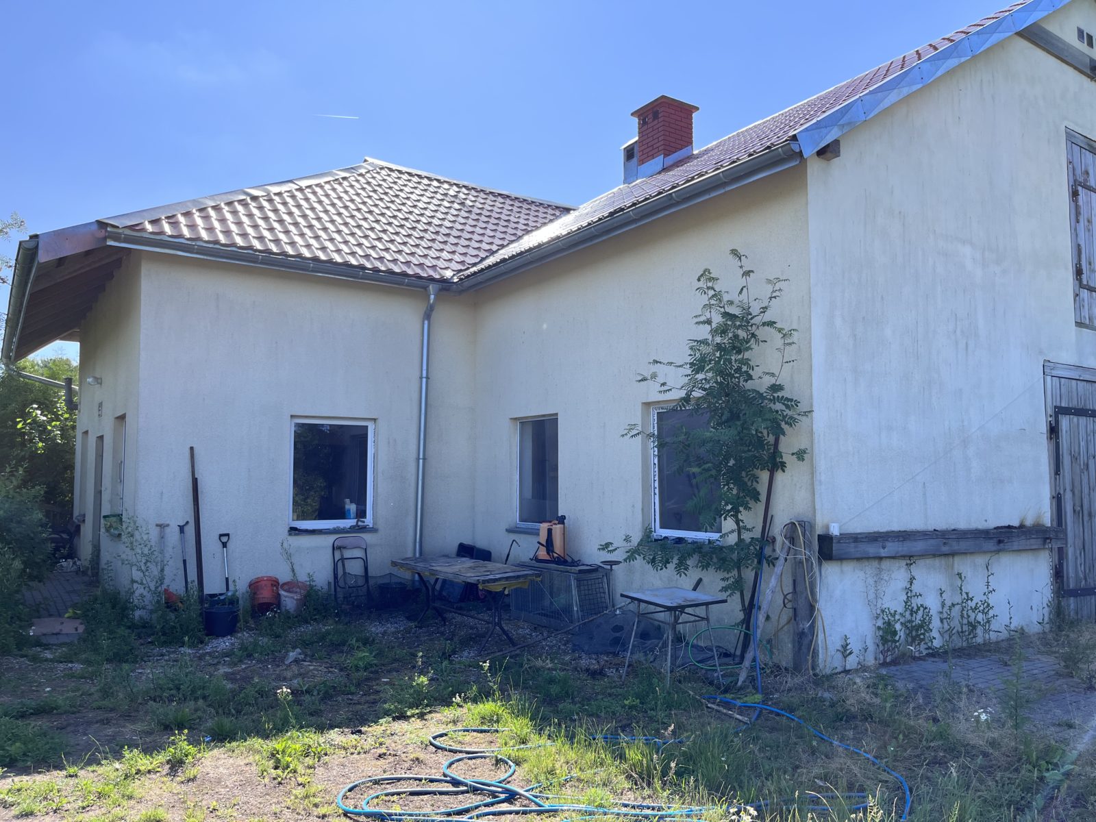 -budynek parterowy z dachem wysokim konstrukcji drewnianej pokryty blachodachówką